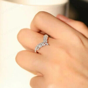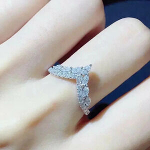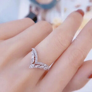925 Sterling Silver Diamond V-Shaped Crown Ring
