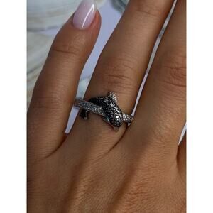 925 Sterling Silver Dolphin Diamond Ring Size 7