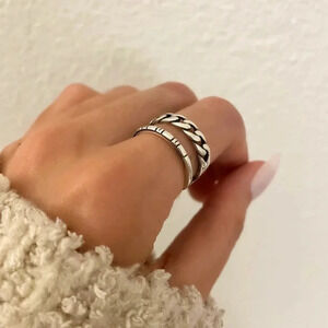 925 Sterling Silver Double Layer Minimalist Ring Dainty Chain Link Ring Band