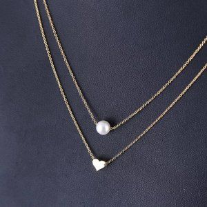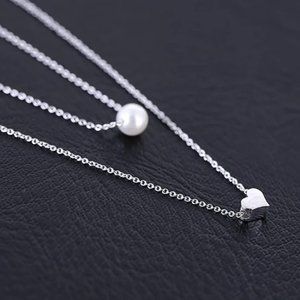 925 Sterling Silver Double Layer Pearl Heart Necklace