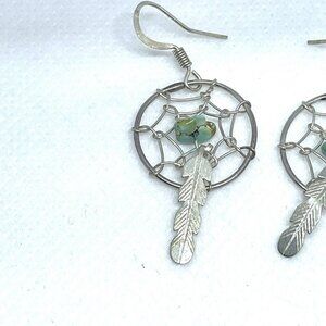 925 Sterling Silver Dreamcatcher Turquoise Feather Earrings Hook Closure