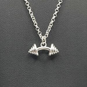 925 Sterling Silver Dumbbell Gym Necklace Workout Weightlifter Valentines Gift