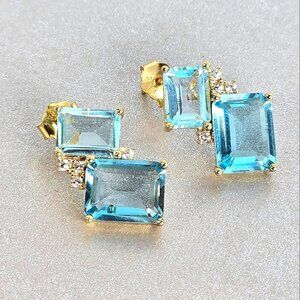 925 Sterling Silver Earrings 14K Gold Plated with Natural Topaz & CZ