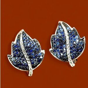 925 Sterling Silver Earrings with Natural Blue Sapphire & White Topaz