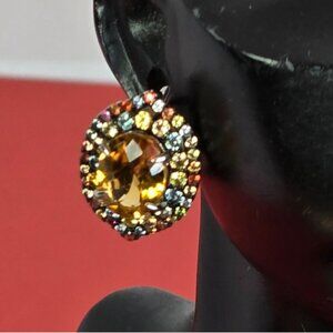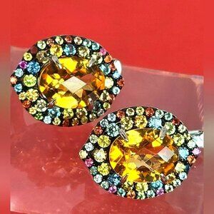 925 Sterling Silver Earrings with Natural Citrine & Sapphire Gemstone