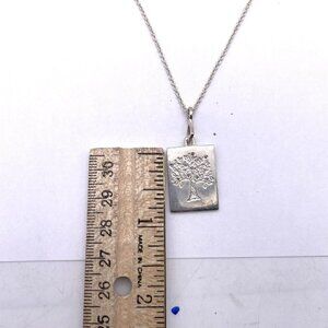 925 Sterling Silver Engraved Rhinestone Tree Rectangle Pendant Chain Necklace 17"
