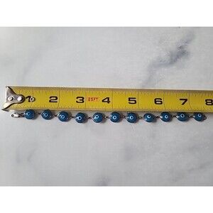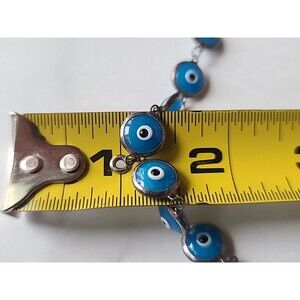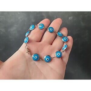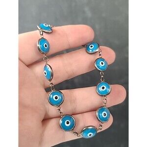 This is a vintage 925 sterling silver evil eye beaded blue glass bracelet.