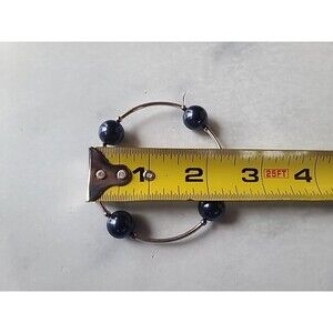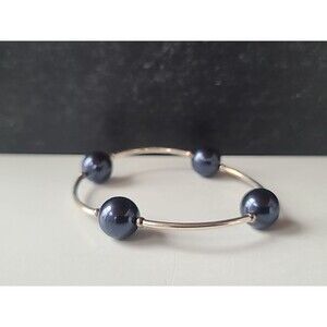 925 Sterling Silver Faux Blue Pearl Beaded Bangle Bracelet Vintage
