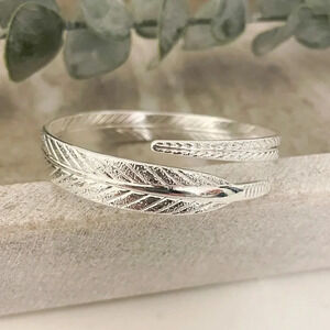 925 Sterling Silver Feather Wrap Bracelet Chunky Wide Large Statement Bracelet