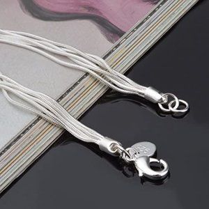 925 Sterling Silver Five-Line Chain with Five-Heart Bracelet Bangle