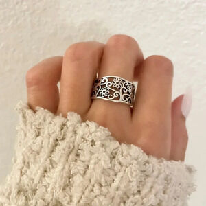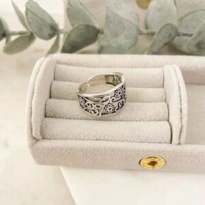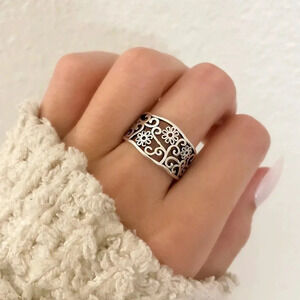 925 Sterling Silver Flower Ring Flower Cutout Ring Vintage Floral Ring Resizable