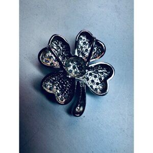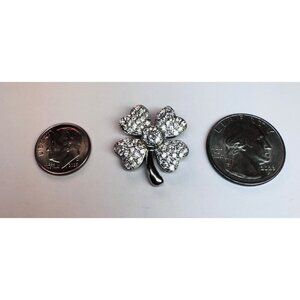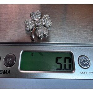 925 Sterling Silver Four Leaf Clover Pendant CZ Estate Lucky Charm Jewelry