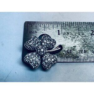 Add a touch of sparkle and good fortune to your jewelry collection with this beautiful estate 925 sterling silver four-leaf clover pendant. The pendant is crafted in solid sterling silver and features a highly detailed four-leaf clover design, each leaf pavé-set with shimmering cubic zirconia stones. The back of the piece is stamped 925 confirming its precious metal content.