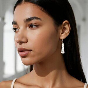 925 Sterling Silver French Hammer Square Bar Long Drop Leverback Earring