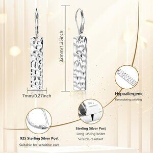 Gold Dangle Drop Earrings Quality Material: The leverback clasps are crafted in hypoallergenic sterling silver, and hammered bar drops are made of premium brass, plated with shiny 14k gold, long-lasting color rention, and not easy to tarnish, rust, or fade, friendly to those who have sensitive ears and won't turn your ears green.