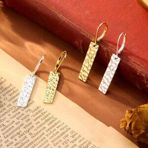 Statement Gold Hammered Earrings for Women: You will get one pair gold hammered bar drop leverback earrings. The chic silhouette adds a touch of elegance,beautiful, and attractive to any look.
