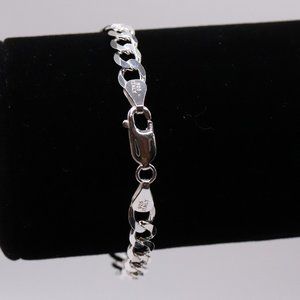 925 Sterling Silver Genuine Solid Curb Cuban Link Chain Italian Bracelet 6mm 7in