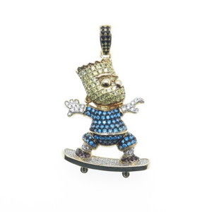 925 Sterling Silver Gold Plated Multi-Color Round-Cut C Z Bart Simpson Pendant