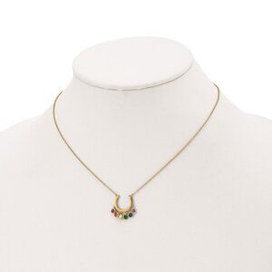 925 Sterling Silver Gold-tone14k flash-plated colorful Multi-Color CZ Horseshoe Necklace charm, with 16" chain and 2 inch extension.