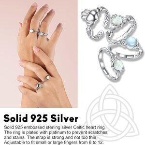 Product details Ring size Adjustable Material Platinum,Silver Metal type Claddagh Gem type Created moonstone About this item STERLING SILVER: 925 sterlings silver claddagh heart ring, solid and durable, easily adjust to fit your ring size 4 to 12. Ring size: width/2mm, thickness/1.6mm, diameter of moonstone/7mm. MOONSTONE CLADDAGH RING: The Claddagh's distinctive design features two