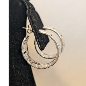 925 Sterling Silver Greek Key Post 1" Round 3/8" Wide Hoop Earrings. Pre-owned, these earrings are in excellent condition.