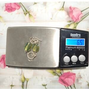 925 Sterling Silver Green Caribbean Amber Dangle Drop Earrings Circle Hook Lot