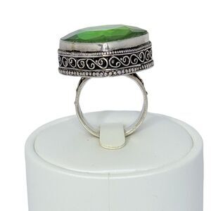 925 Sterling Silver Green Crystal Large Statement Ring Sz 8.5 Turkish Ethnic