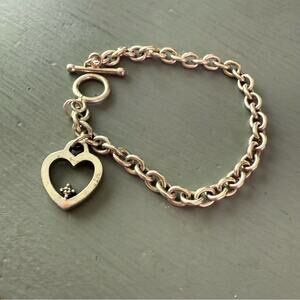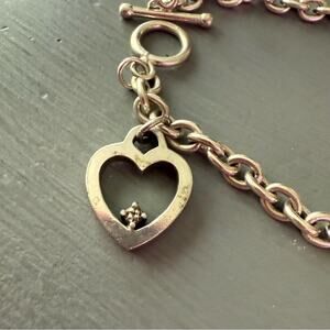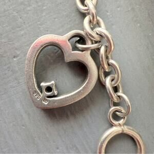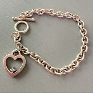 925 Sterling Silver Heart Charm Chainlink Toggle Bracelet