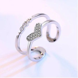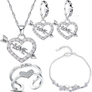 ๐ 925 Sterling Silver Heart Earrings Necklace Bracelet And Ring Adjustable Set