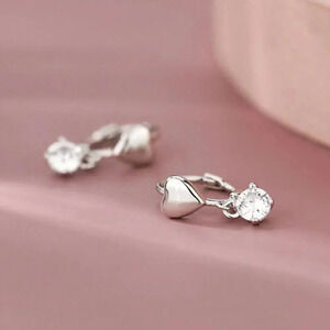 925 Sterling Silver Heart Huggie Earrings Minimalist Dangle Drop Earrings