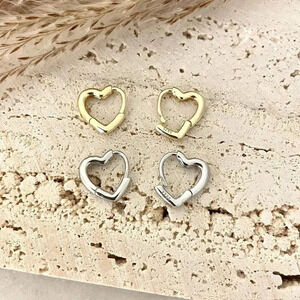 ♥ Dainty Sterling Silver Heart Huggie Earrings