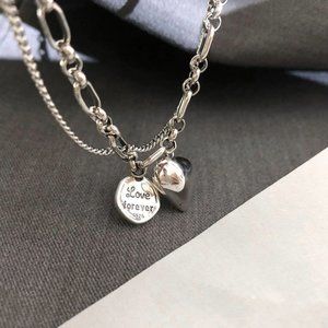 *925 Sterling Silver Heart Link Chain Bracelet B