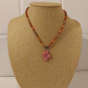 925 Sterling Silver Heart and Key Clasp Pink Cross Pendant 14" Necklace