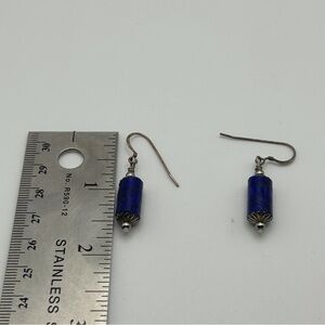 925 Sterling Silver Hook Dangle Earrings with Royal Blue Lamp Inspired Design