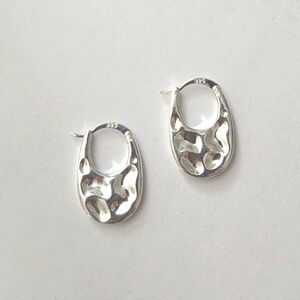 925 Sterling Silver Hoop Earrings Hammered Modern Elegant Quiet Luxury