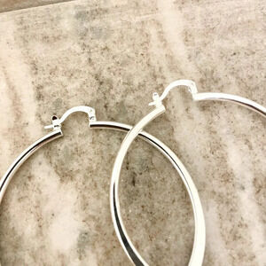 925 Sterling Silver Hoop Earrings Large Silver Hoops Modern Earrings