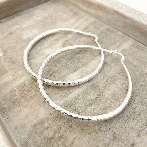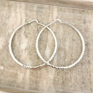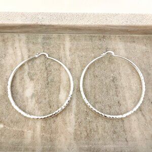 ♥ Beautiful Sterling Silver Diamond Cut Large Hoop Earrings