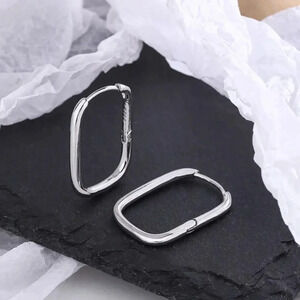 925 Sterling Silver Hoop Huggie Earrings Round Rectangle Hoops Dainty Earrings