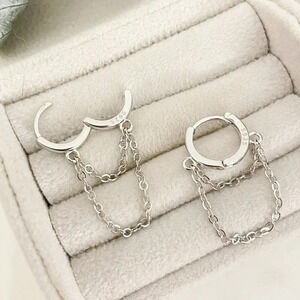 925 Sterling Silver Huggie Earrings Dangle Chain Earrings Small Hoops Huggies