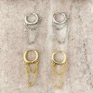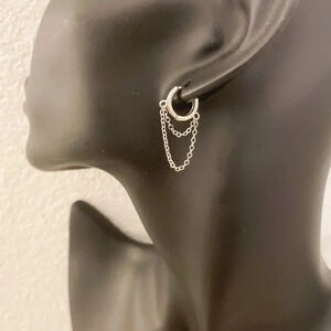 ♥ Sterling Silver Small Dangle chain Huggie Earrings