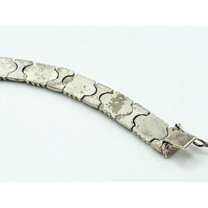 This beautiful bracelet is made of 925 sterling silver and comes from Italy. It features a unique link design that is both fancy and elegant. The bracelet is 7 1/2 inches in length and has been stamped and tested to ensure its quality. It is signed by the brand Link and is made of nickel-free metal. The bracelet is vintage and has a style that is perfect for any occasion. It would make a great addition to any jewelry collection and is sure to impress.