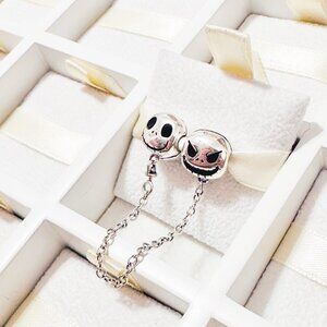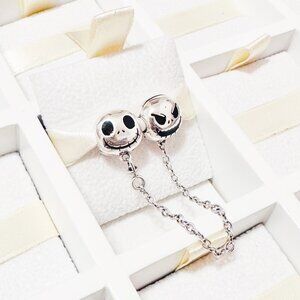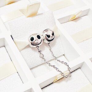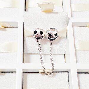 925 Sterling Silver Jack Skellington Faces Safety Chain Charm Bead fits Pandora