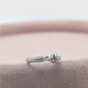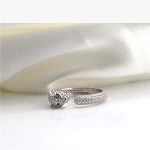 925 Sterling Silver Jaguar/ Leopard Cat, Green Eyed Panther Ring