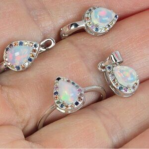 925 Sterling Silver Jewelry Set with Natural White Opal & Multicolor Sapphire