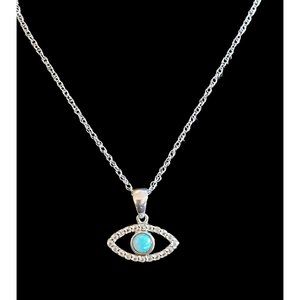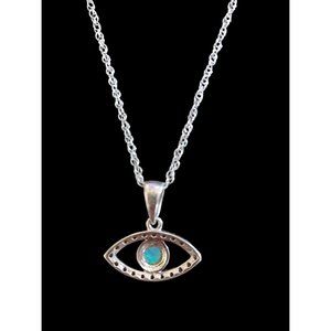 925 Sterling Silver Lab Opal Natural Stone Evil Eye Pendant Necklace 18.5