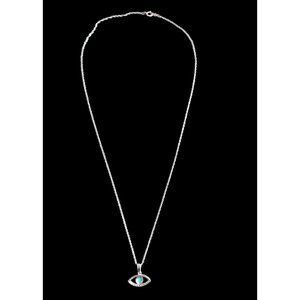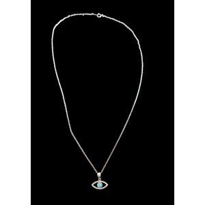 Add a touch of nature-inspired beauty to your jewelry collection with this stunning Evil Eye pendant necklace. Crafted from 925 sterling silver, this necklace features a mesmerizing natural stone lab opal as the centerpiece. Its elegant design is further accentuated by the intricate details on the pendant, making it a perfect addition to any outfit. The pendant hangs from a delicate chain and measures 18.5 inches, making it an ideal length for both casual and formal occasions. The necklace is brand new and has never been worn, ensuring that you receive a high-quality piece of jewelry. Elevate your style today with this exquisite Evil Eye pendant necklace.