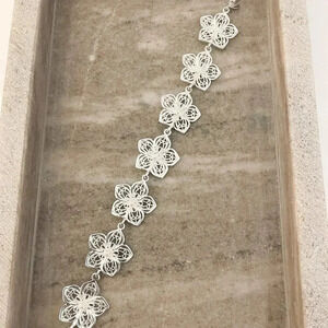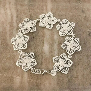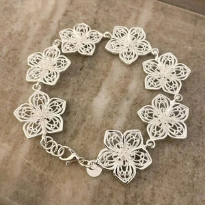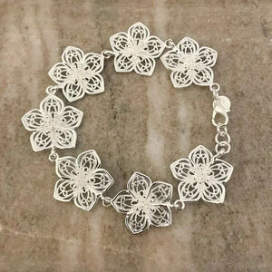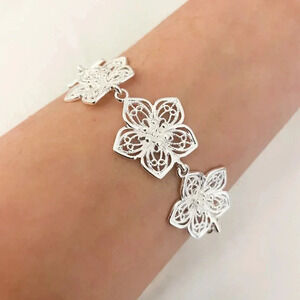925 Sterling Silver Large Flower Bracelet Big Statement Bracelet