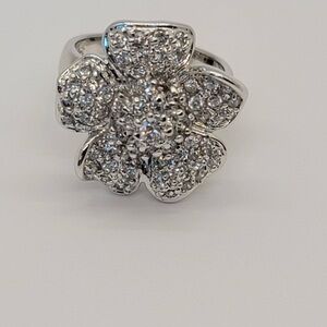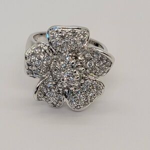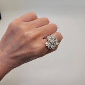 925 Sterling Silver Large Flower Ring Size 6.5