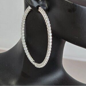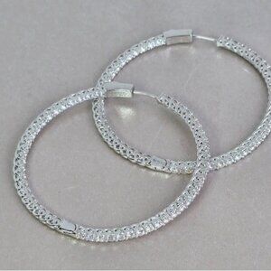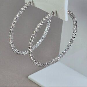 925 Sterling Silver Large Hoop Earrings 4.5 cm with Genuine D Color Moissanite Gemstone.