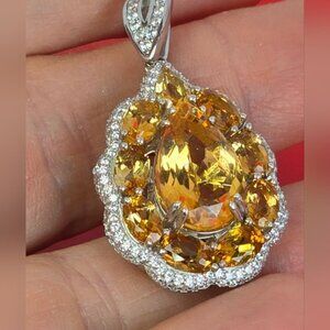 925 Sterling Silver Large Pendant 3x2cm with Natural Citrine Gem & Cz